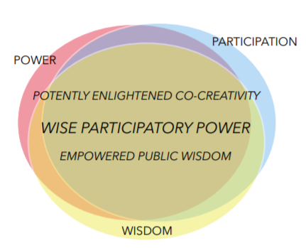 3D Wise Democracy Model: One way to explore democracy is through the lenses of power, participation, and the wisdom of its outcomes. These dimensions of democracy are always present to some degree, and each can be improved. Here are some documents where you can explore this model further: